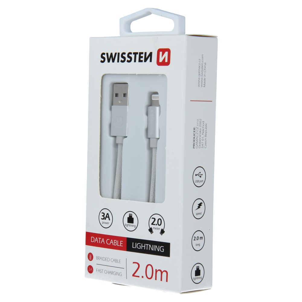 DATA CABLE SWISSTEN TEXTILE USB / LIGHTNING 2.0 M SILVER