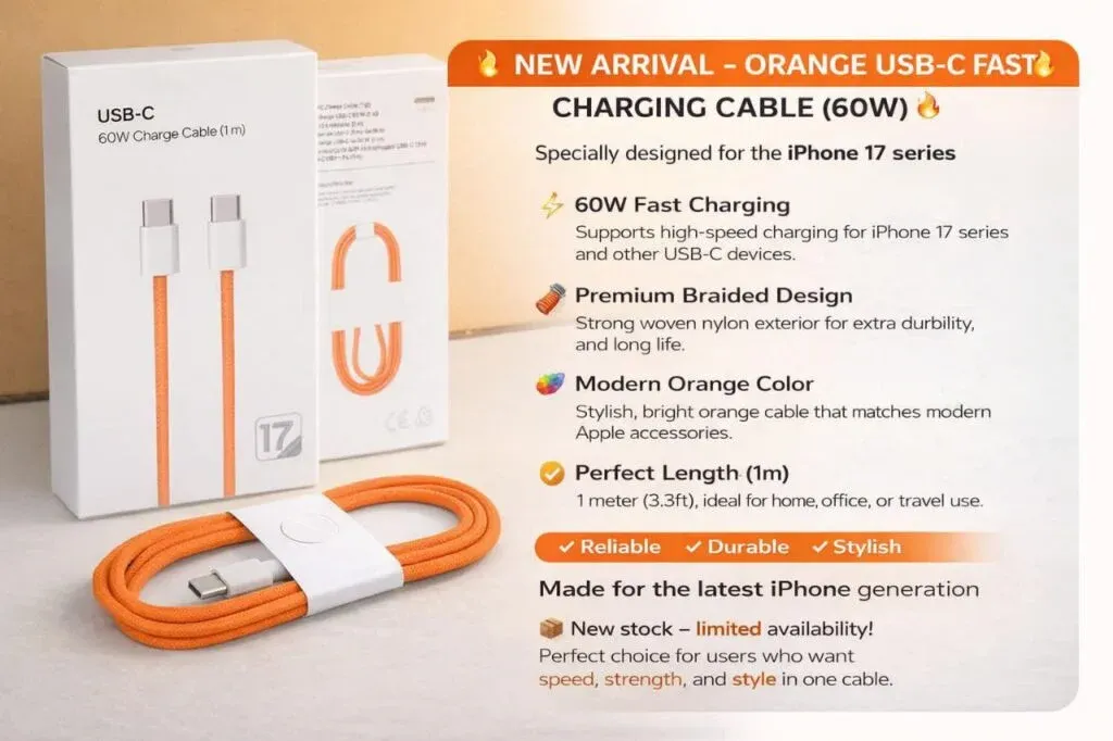 60W 1m For iphone 17 series / C to C Cable with Package Orange